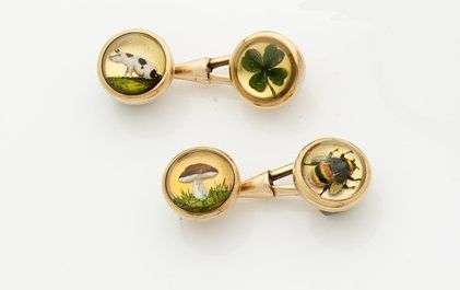 PAIRE DE BOUTONS DE MANCHETTES Cristal d'Essex et or 18k (750)