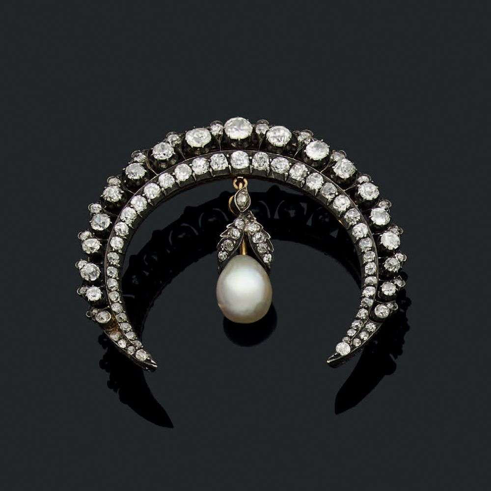 A natural pearl, diamond, gold and silver brooch, 19th century, report