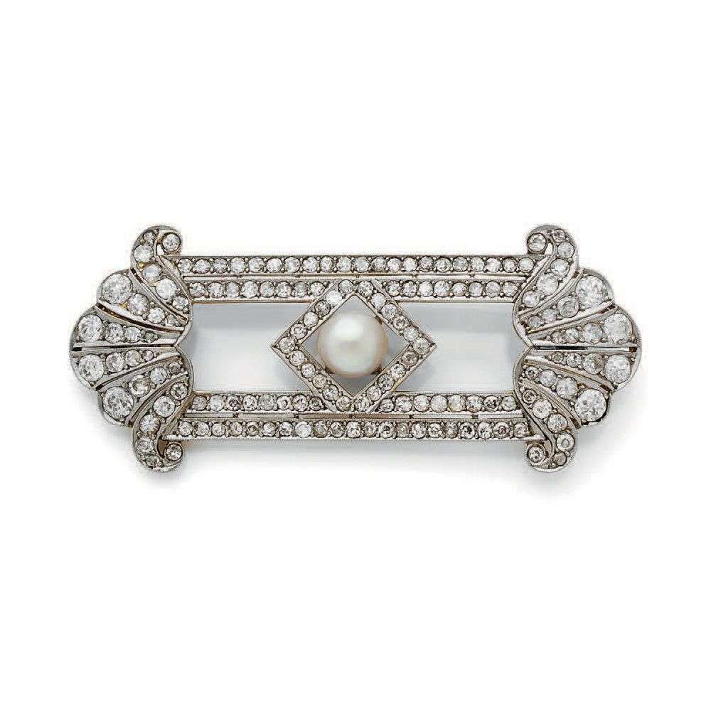 Diamants taile ancienne et diamants taille huit-huit, perle supposée fine, non testée