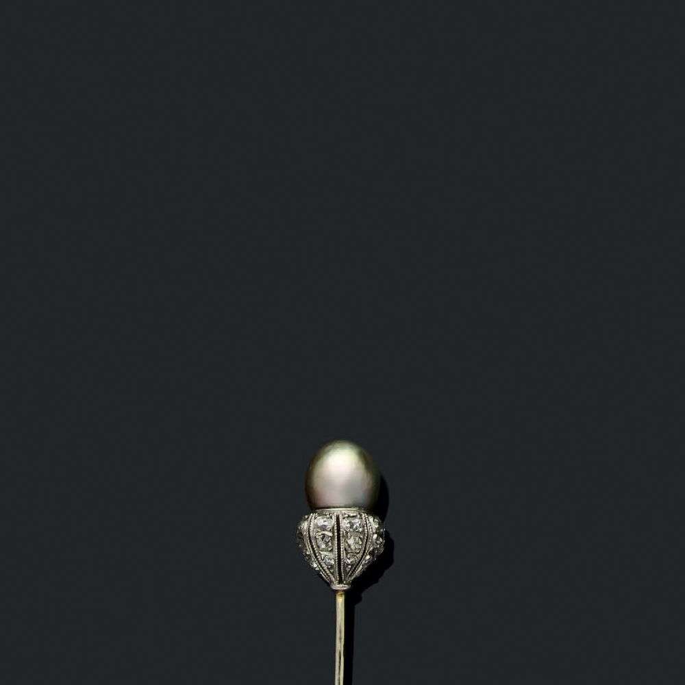 A natural pearl, diamond, platinum and gold pin, report