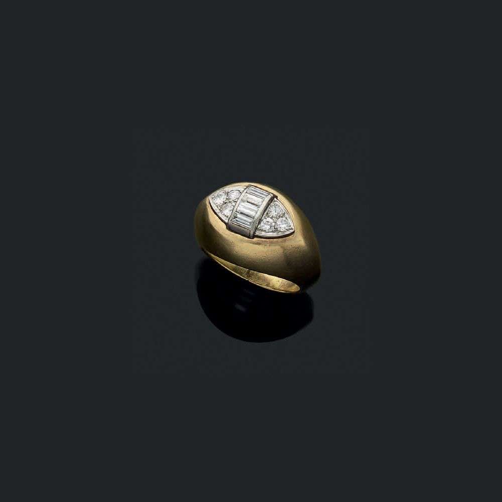 A diamond, gold and platinum ring by Suzanne Belperron, Olivier Baroin certificate