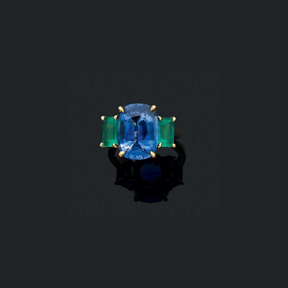 A sapphire, emerald and gold ring, report