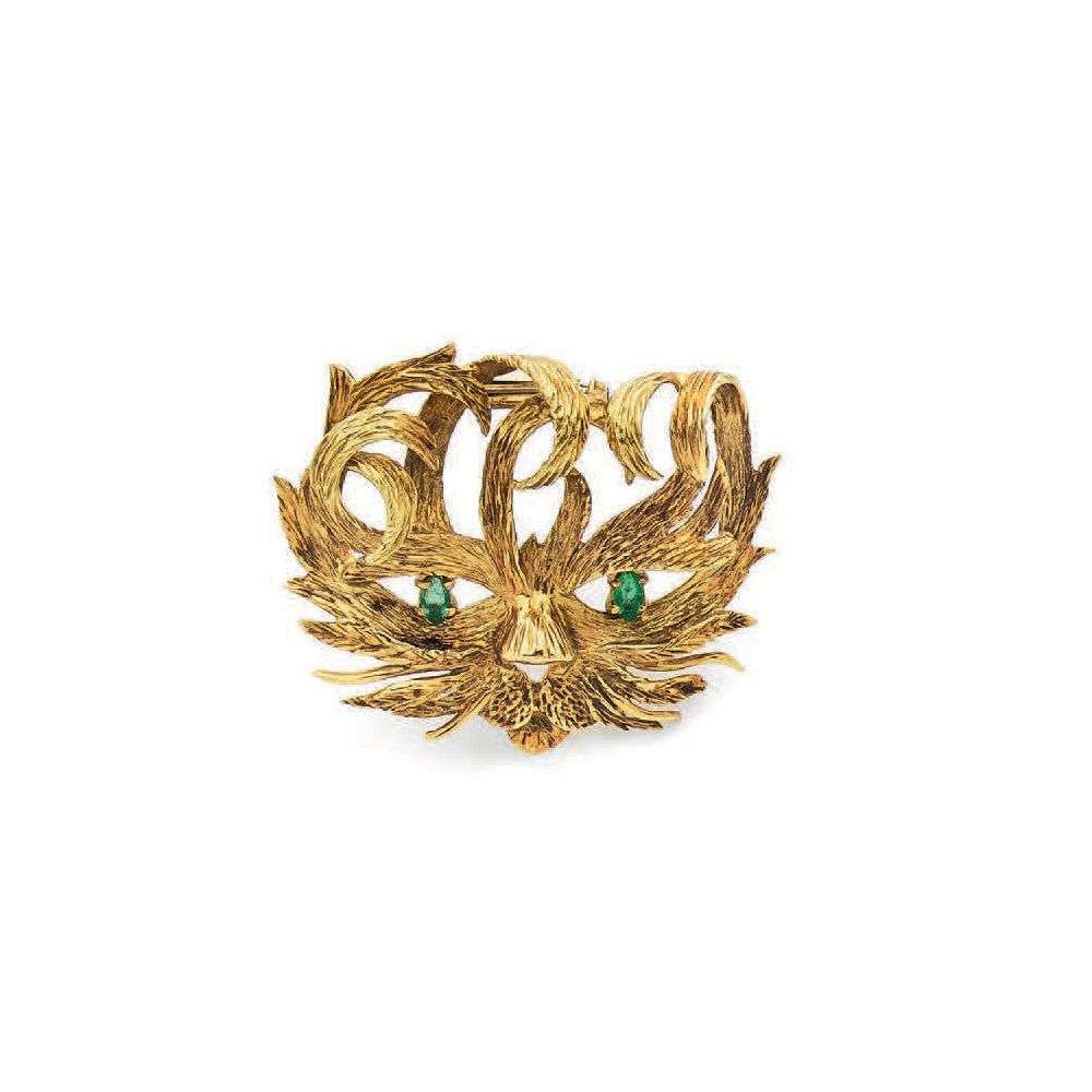 An emeral and gold brooch, signed Hermès