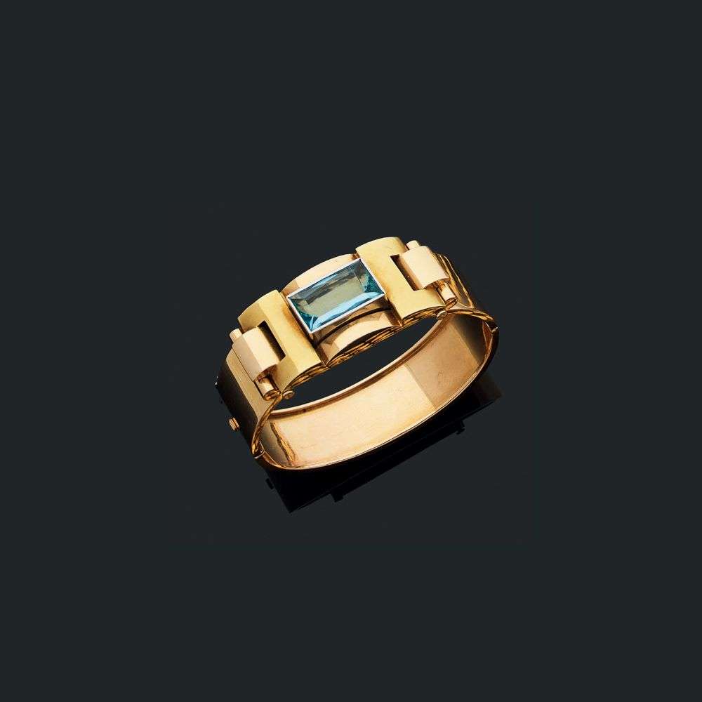 An aquamarine and gold bracelet, circa 1945