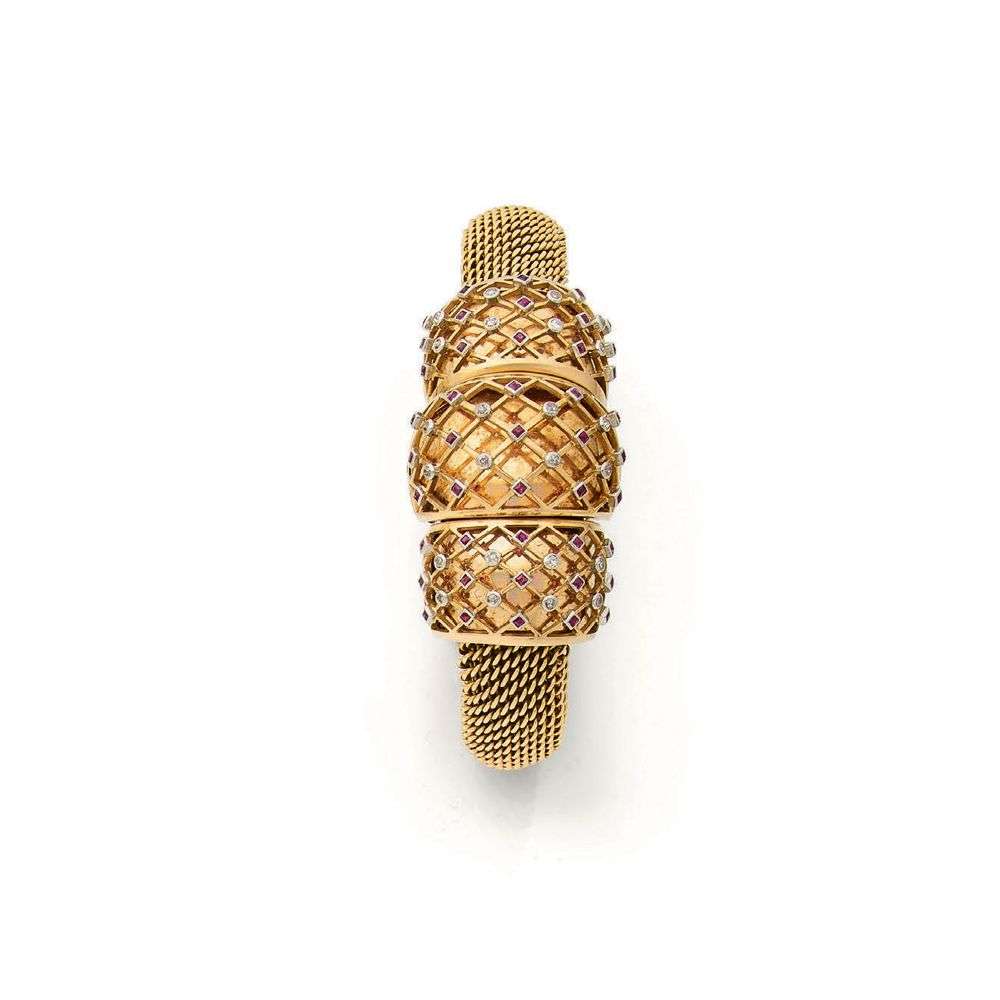 A ruby, diamond and gold wristwatch