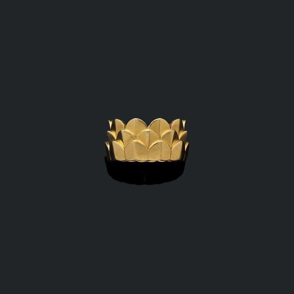 A gold ring, signed Fred