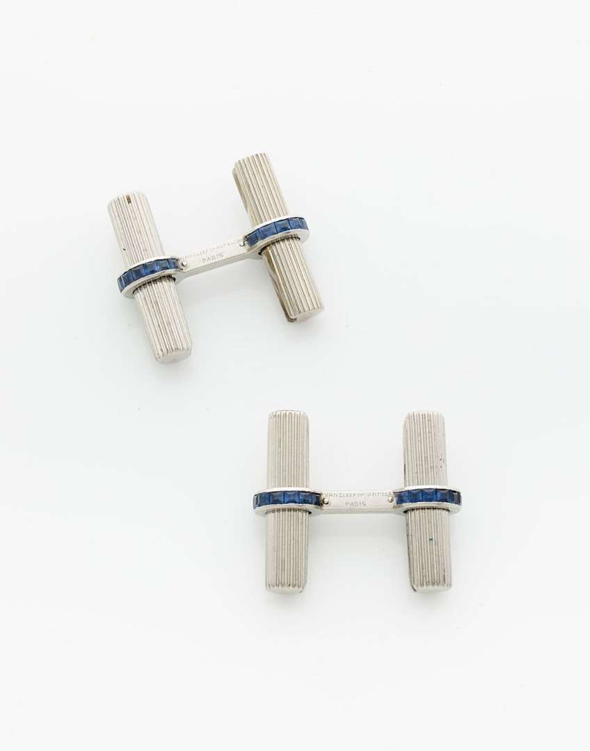 Sapphire and platinum cifflinks, signed Van Cleef & Arpels