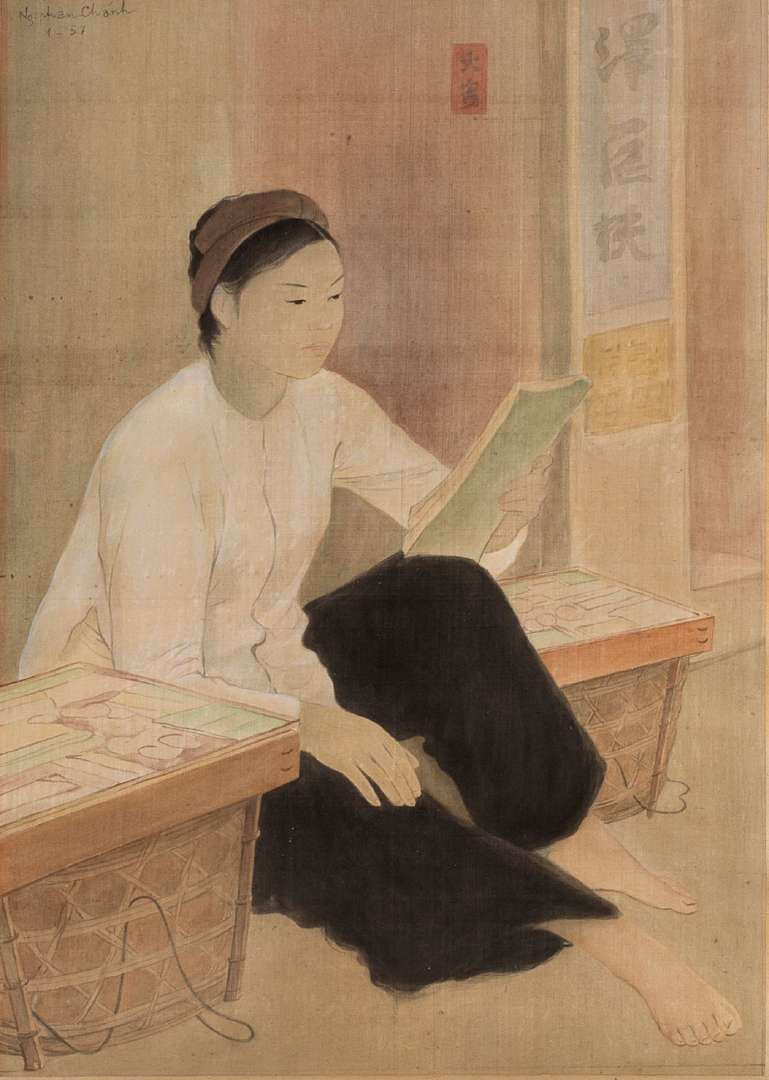 Tranh Lụa, Nguyễn Phan Chánh, Bảo tàng Mỹ thuật Việt Nam, Hanoï, 1992, titré Cô hàng xén, repr. n°14, p. 46
