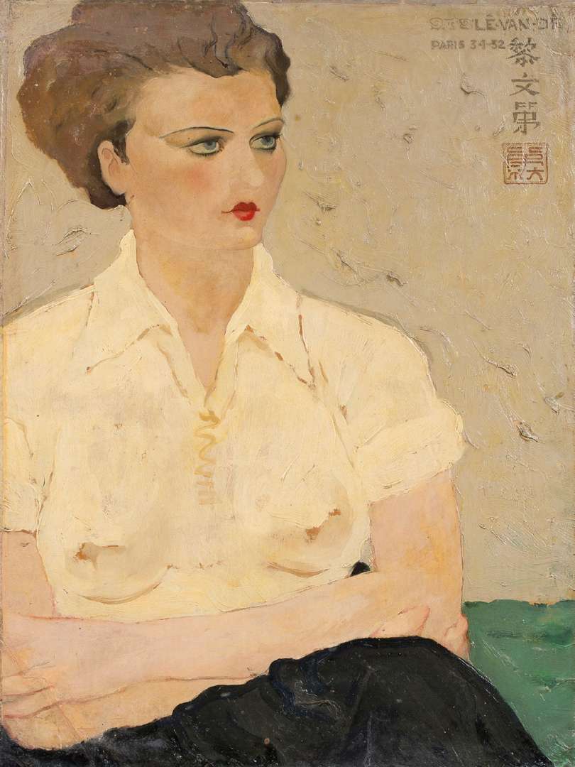 L’oeuvre Femme au chemisier transparent a été peinte à Paris et est datée du 3 janvier 1932. Lê Văn Đệ est alors élève de l’atelier de Jean-Pierre Laurens aux beaux-arts. Le modèle est vêtu, coiffé et maquillé à la mode parisienne des années trente. Elle est assise, le regard franc dirigé vers sa gauche. L’artiste fait le choix d’aplats de couleurs et d’une touche visible.