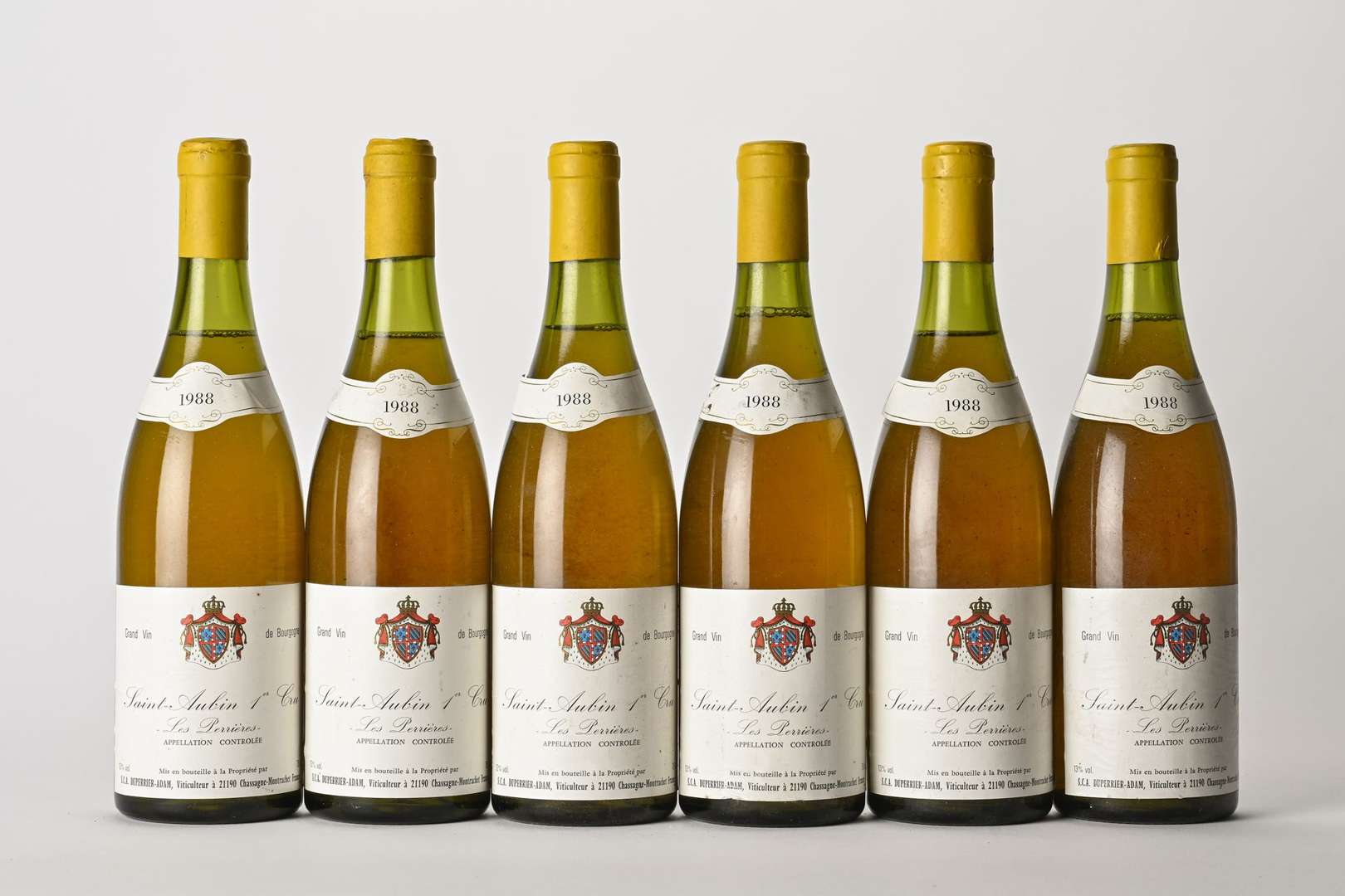 6 B SAINT-AUBIN LES PERRIÈRES Blanc (1er Cru) (4 à 3 cm| 5 e.l.s. et 1 e.a| 1 clm.a.) - 1988 - Domaine Duperrier-Adam