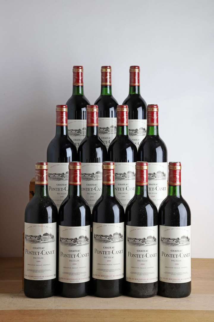 12 B CHÂTEAU PONTET-CANET (Caisse Bois d'origine) (2 e.t.h. et 2 e.l.a.) - 1990 - GCC5 Pauillac