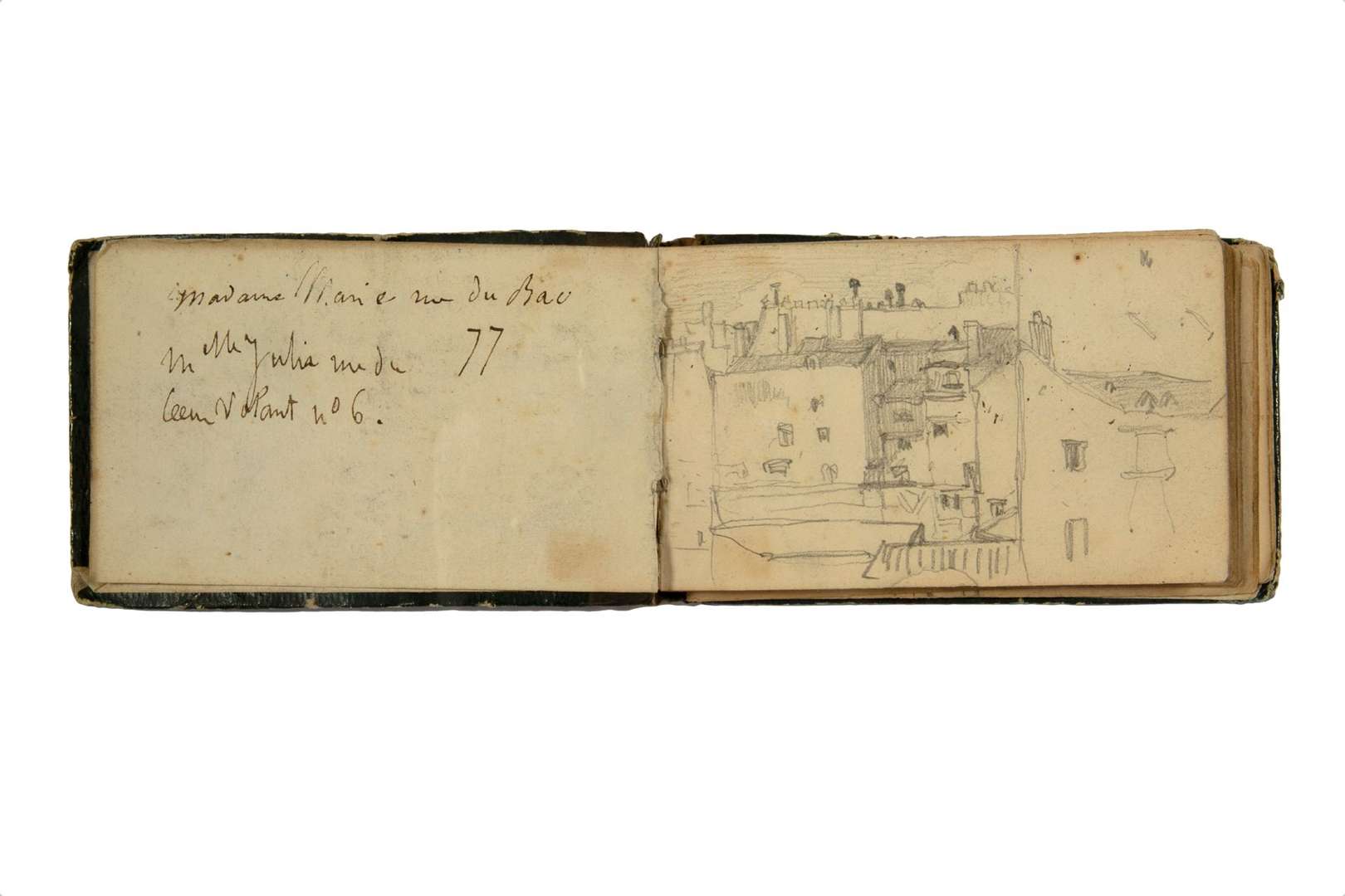 CARNET de croquis. In-12 oblong (7 x 11 cm.) de 48 ff.