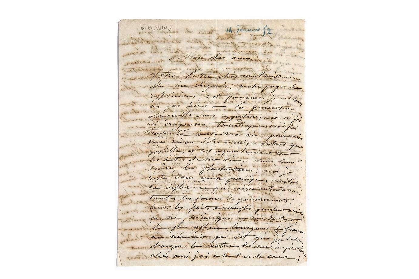 L.A.S. « G.C », [Ornans 14 janvier 1852, à son ami Francis WEY] | 4 pages in-4.