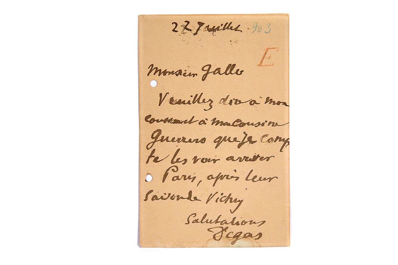 L.A.S. « Degas », 27 juillet [1903], à M. Gallo | 1 page in-8 (trous de classeur).