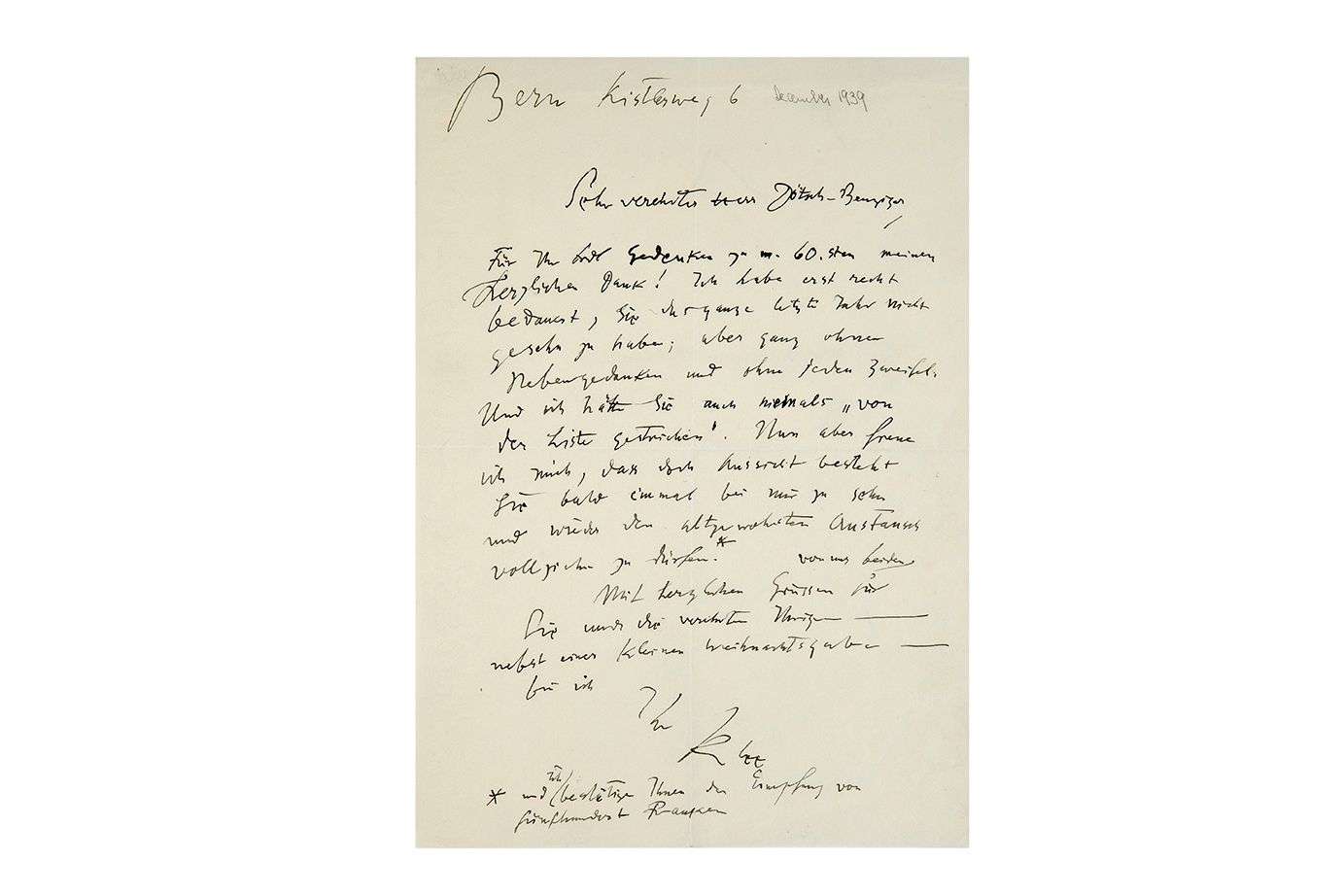 Klee le remercie de ses aimables pensées pour ses 60 ans, et regrette de ne pas l'avoir vu l'année passée. Il se réjouit d'avoir une chance de le revoir bientôt...