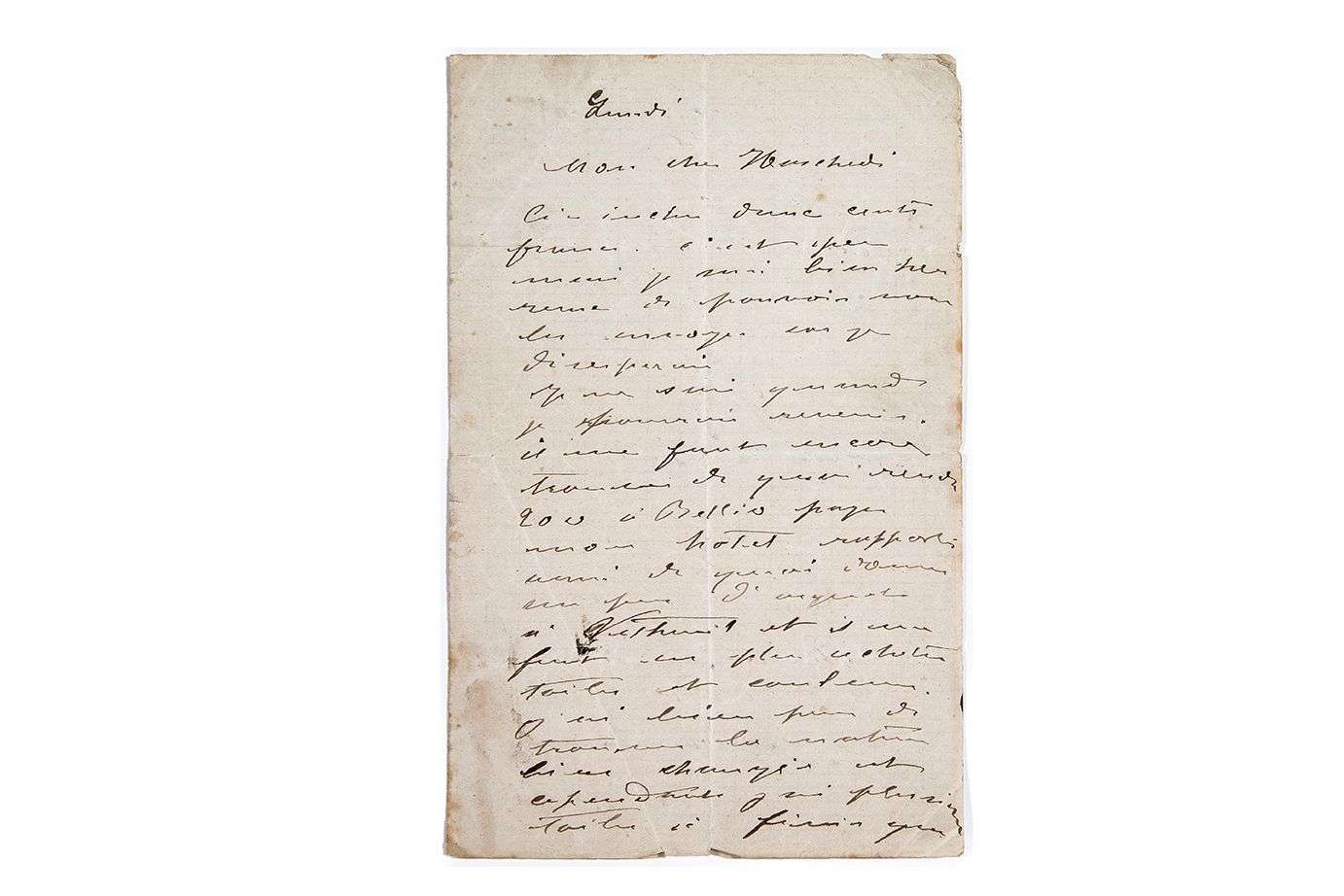 On joint une L.A.S. d'Ernest HOSCHEDÉ, Paris 14 février 1884, à un ami (Monet ?) avec qui il a besoin de causer : « C'est important ! » (1 p. in-8).