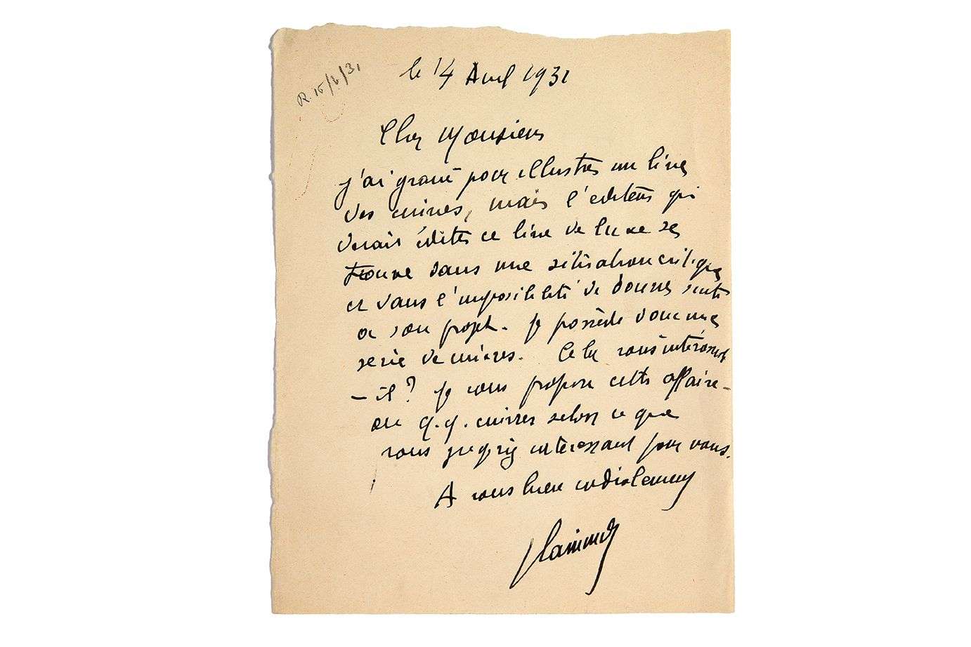 L.A.S. « Vlaminck », 14 avril 1931 | 1 page in-8.