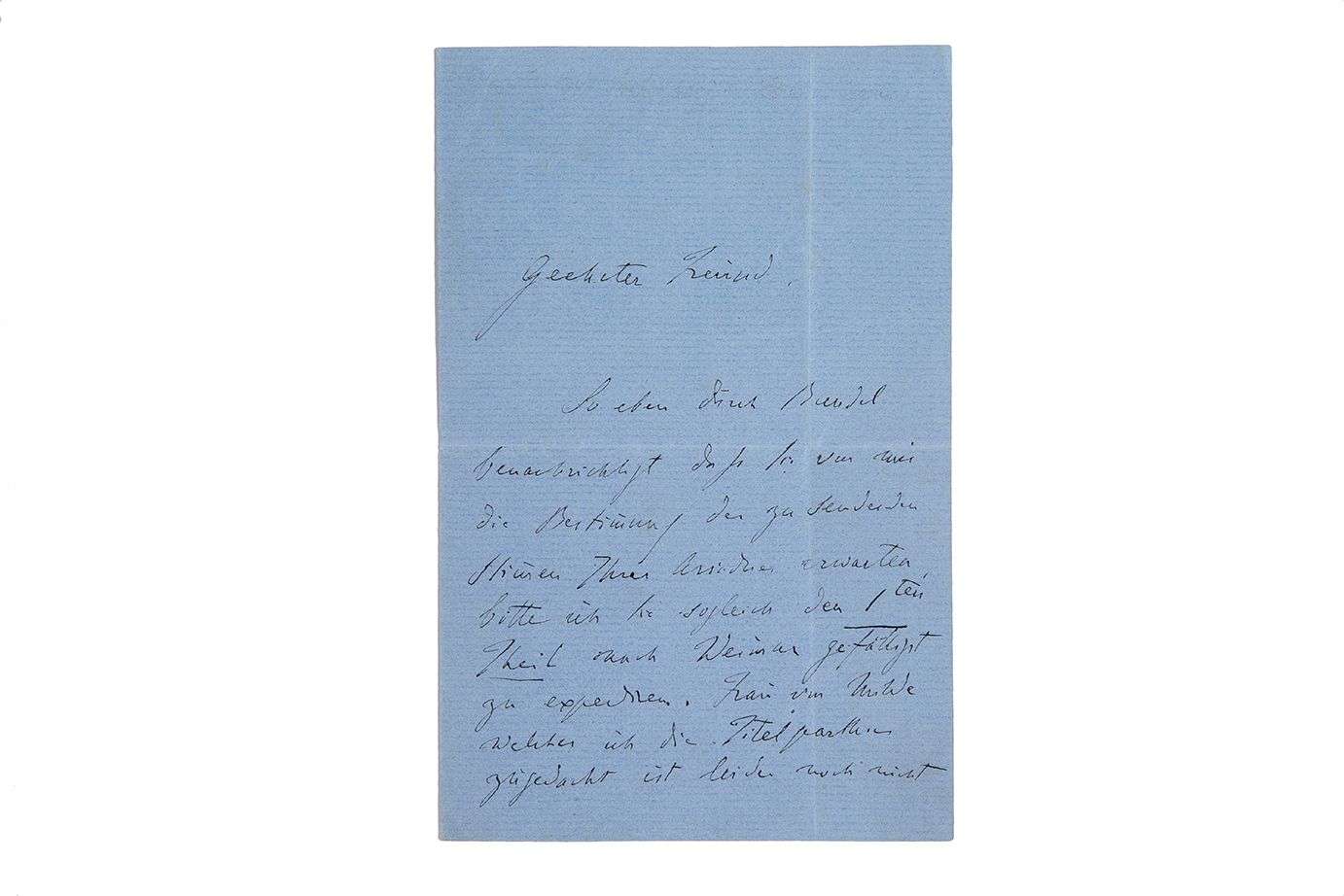 L.A.S. « F. Liszt », Weimar 14 juillet 1861, [à Max SEIFRIZ] | 2 pages et demie in-8 sur papier bleu | en allemand.