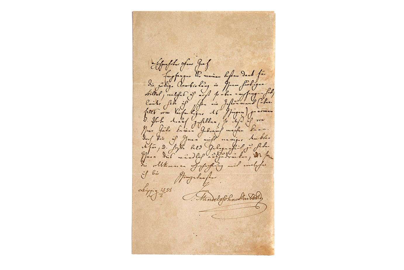 L.A.S. « F. Mendelssohn-Bartholdy », Leipzig 15 février 1838, au comte von REUSS | 1 page in-8, adresse.