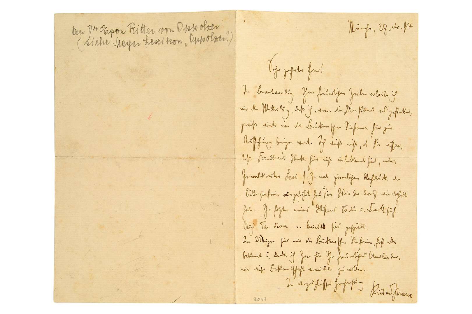 L.A.S. « Richard Strauss », München (Munich) 27 décembre 1894, [à Egon von OPPOLZER] | 1 page in-8 (légères fentes au pli) | en allemand.