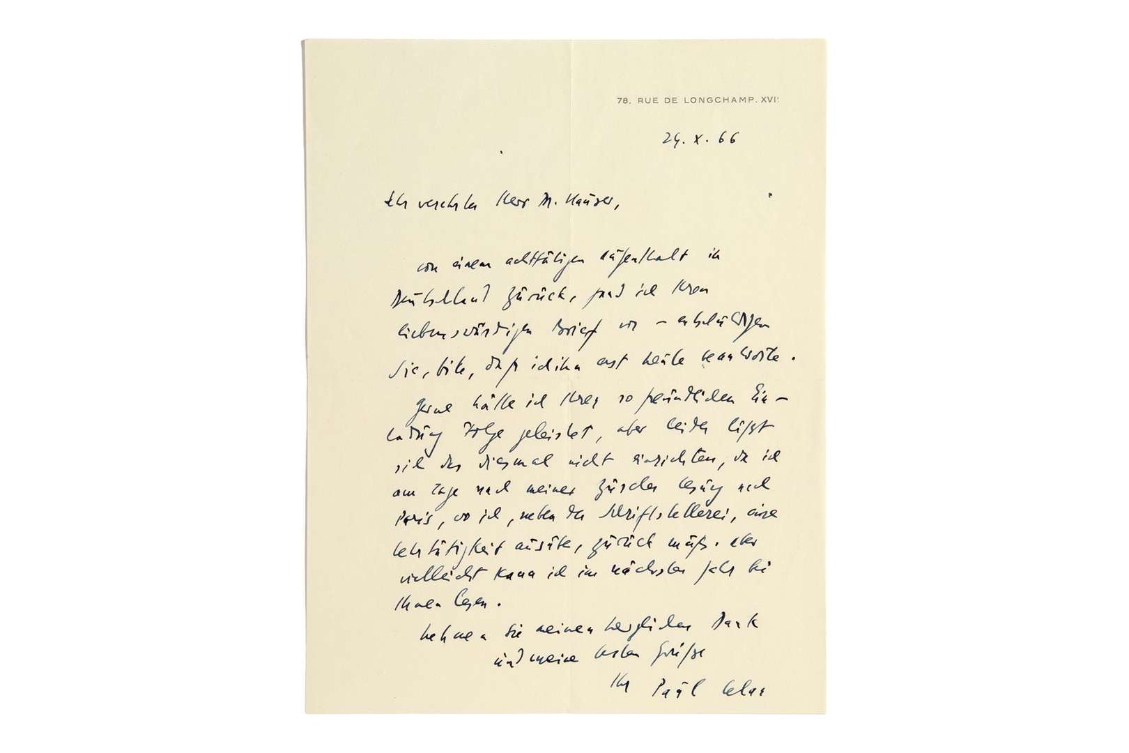 L.A.S. « Paul Celan ». [Paris] 24 octobre 1966, à l'historien