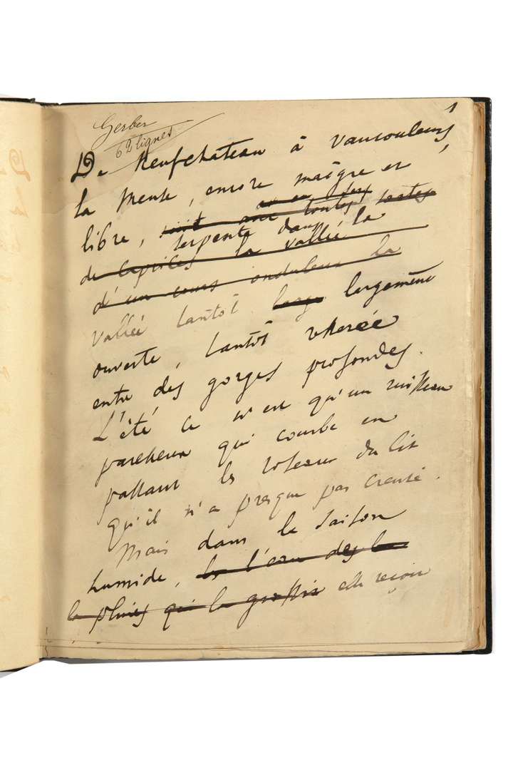 A. Le premier manuscrit, sans titres, correspond, avec d'importantes variantes, au début de l'ouvrage. D'une écriture cursive à l'encre noire, il présente de très nombreuses ratures et corrections. La pagination discontinue, parfois multiple et corrigée, montre que