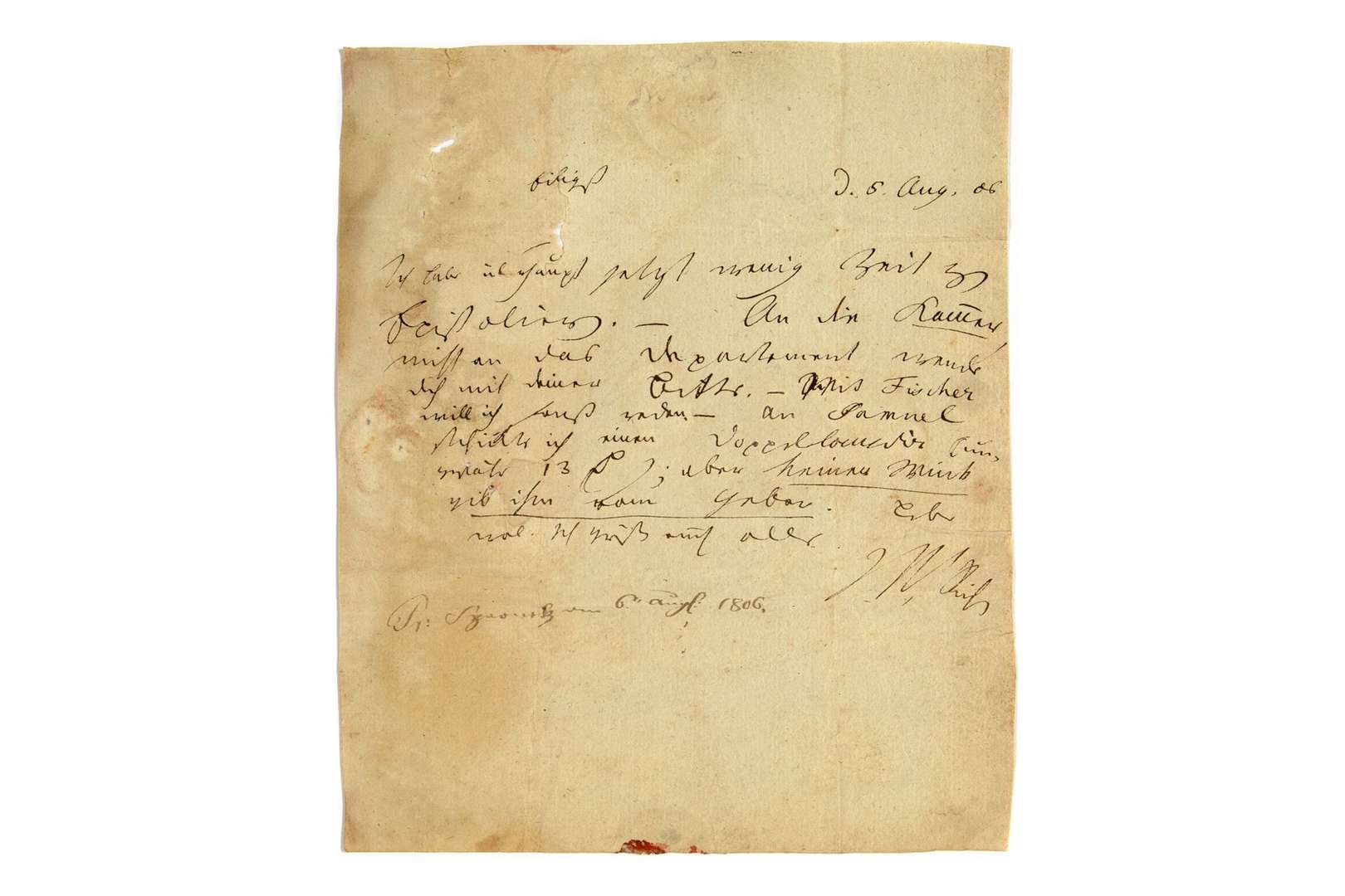 L.A.S. « JPF Richter », 5 août 1806, à Johann Gottlieb