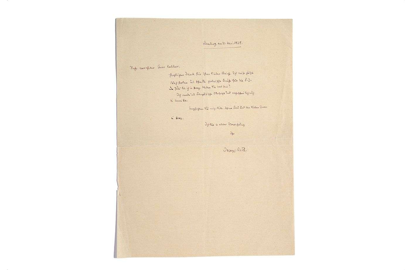 L.A.S. « Joseph Roth ». Lemberg [Lviv] 31 mai 1928, à Herr KELLER | demi-page in-4 | en allemand.