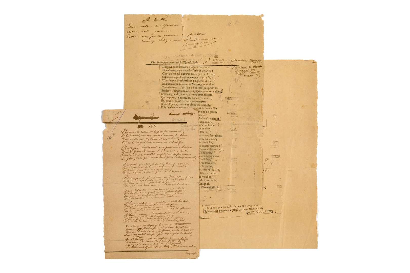 On joint un jeu d'épreuves corrigées du poème présenté « au concours de l'Écho de Paris ». Il comporte 16 quatrains et présente des variantes avec la version définitive. Verlaine y a porté quelques corrections, et ajouté en épigraphe un vers extrait des Birds in the night des Romances sans paroles. Le jeu d'épreuves a été adressé à Verlaine par l'éditeur, avec cette note : « Cher Maître, Reçu votre rectification. Votre note passera. Prière renvoyer les épreuves au plus tôt. Excusez télégramme et cordialement ».