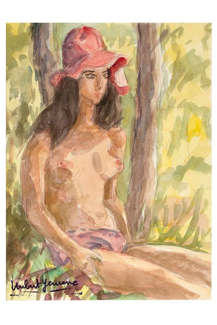 Aquarelle sur papier signée en bas à gauche 26,5 x 19,5 cm à vue (sous passe-partout)