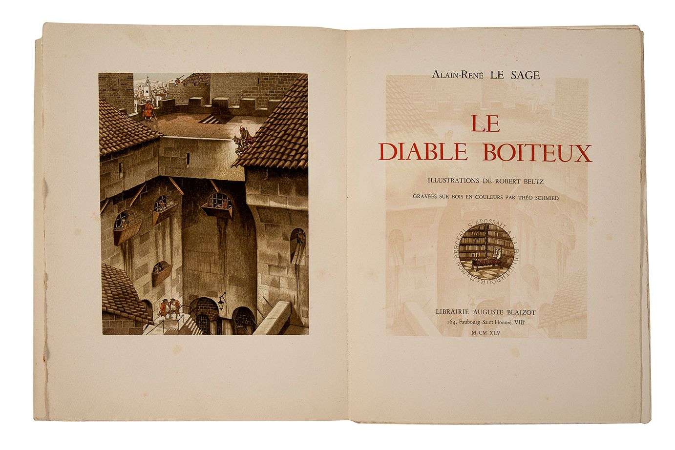Le Diable boiteux. Illustrations de Robert Beltz gravées sur bois en couleurs par Théo Schmied. Paris, Blaizot, 1945.