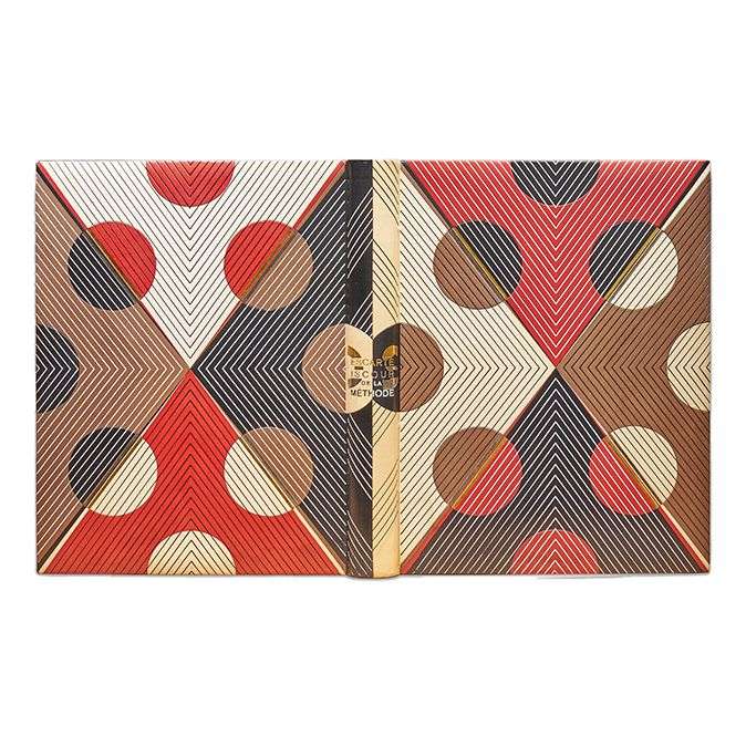 Discours de la méthode pour bien conduire sa raison, chercher la vérité dans les sciences. Paris, La Tradition, 1947. In-4, box de 4 couleurs, rouge, châtaigne, crème et noir, formant sur les deux plats une composition de 4 triangles opposés par leurs pointes, chacun décoré de cercles mosaïqués qui reprennent les coloris en alternance, le tout souligné de filets blancs et bruns et de listels dorés, dos lisse orné de filets multiples blancs et noir et portant le nom de l'auteur doré, le titre argent et noir, sur une pièce noire mosaïquée, tranches au palladium sur témoins, doublure de box rouge bord à bord, avec signature de R. Adler et nom du possesseur sur pièces mosaïquées, garde de daim gris, double garde de papier brun semé de points dorés, chemise chemise demi-box noir titrée au dos, étui [Rose Adler] (petits frottements sur les coupes, tache au coin du contreplat et de la garde sup. | dos de la chemise fendu et écaillé, étui fendu et usé).