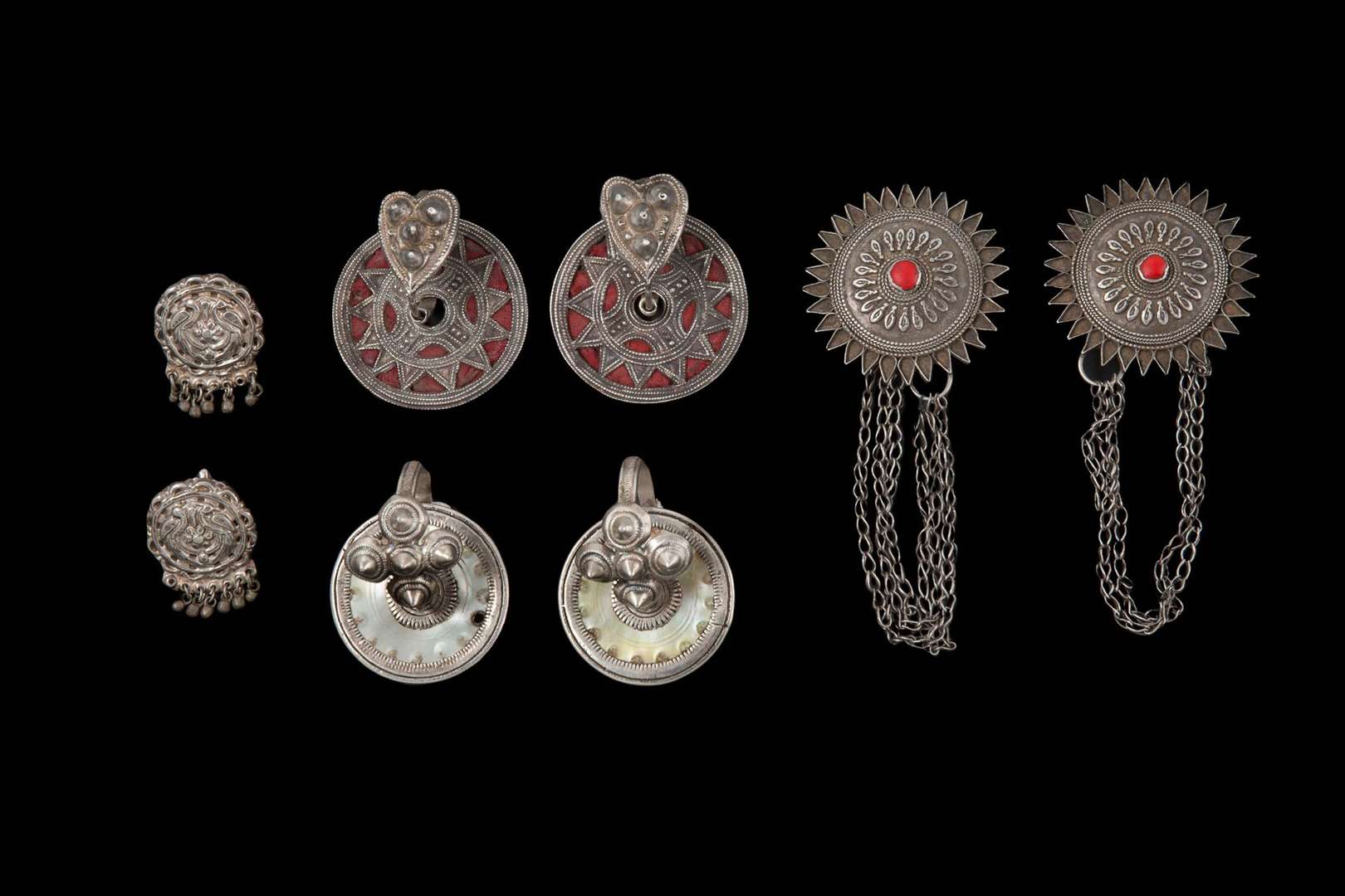 Ensemble de quatre paire d'ornements d'oreille en métal argenté