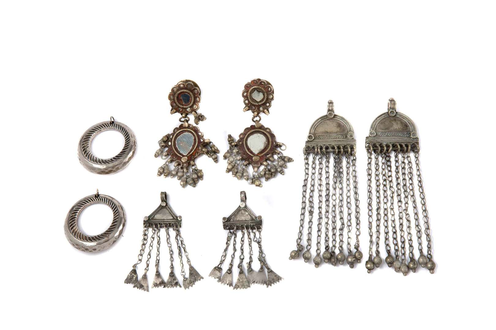 - Six paires de pendants jimile (pouvant former pendentifs) de formes variées rehaussés de pendeloques (Groupe Tharu)