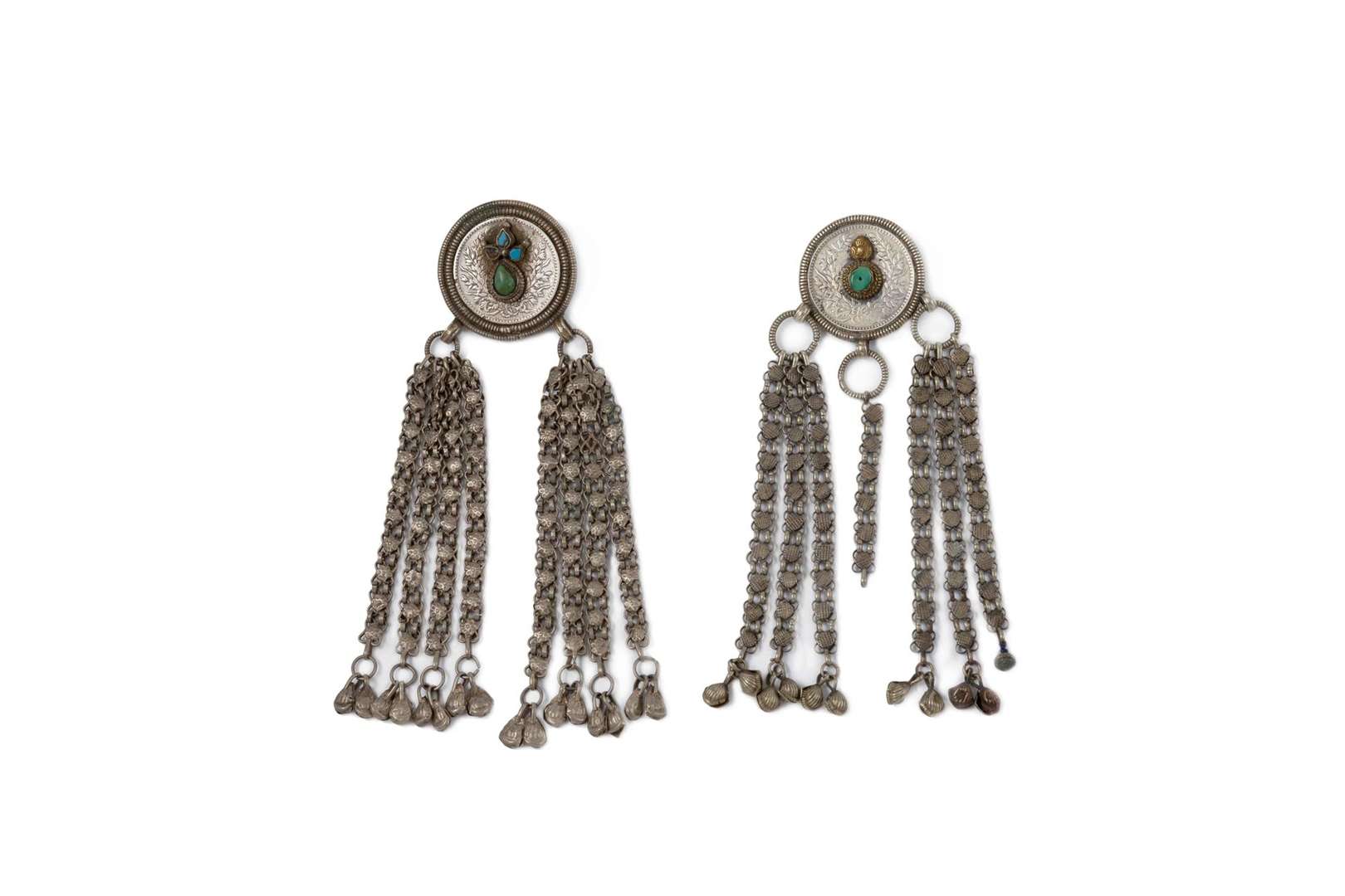 Ensemble de trois broches à pendeloques ornées de pierres de couleur