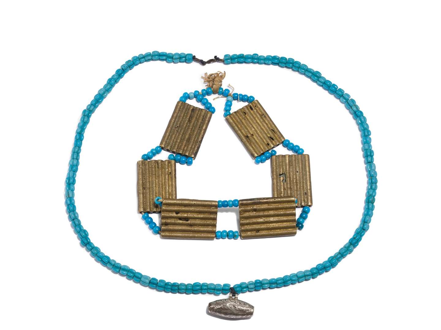 L'un avec un pendentif conique, l'autre avec des plaques en laiton.
