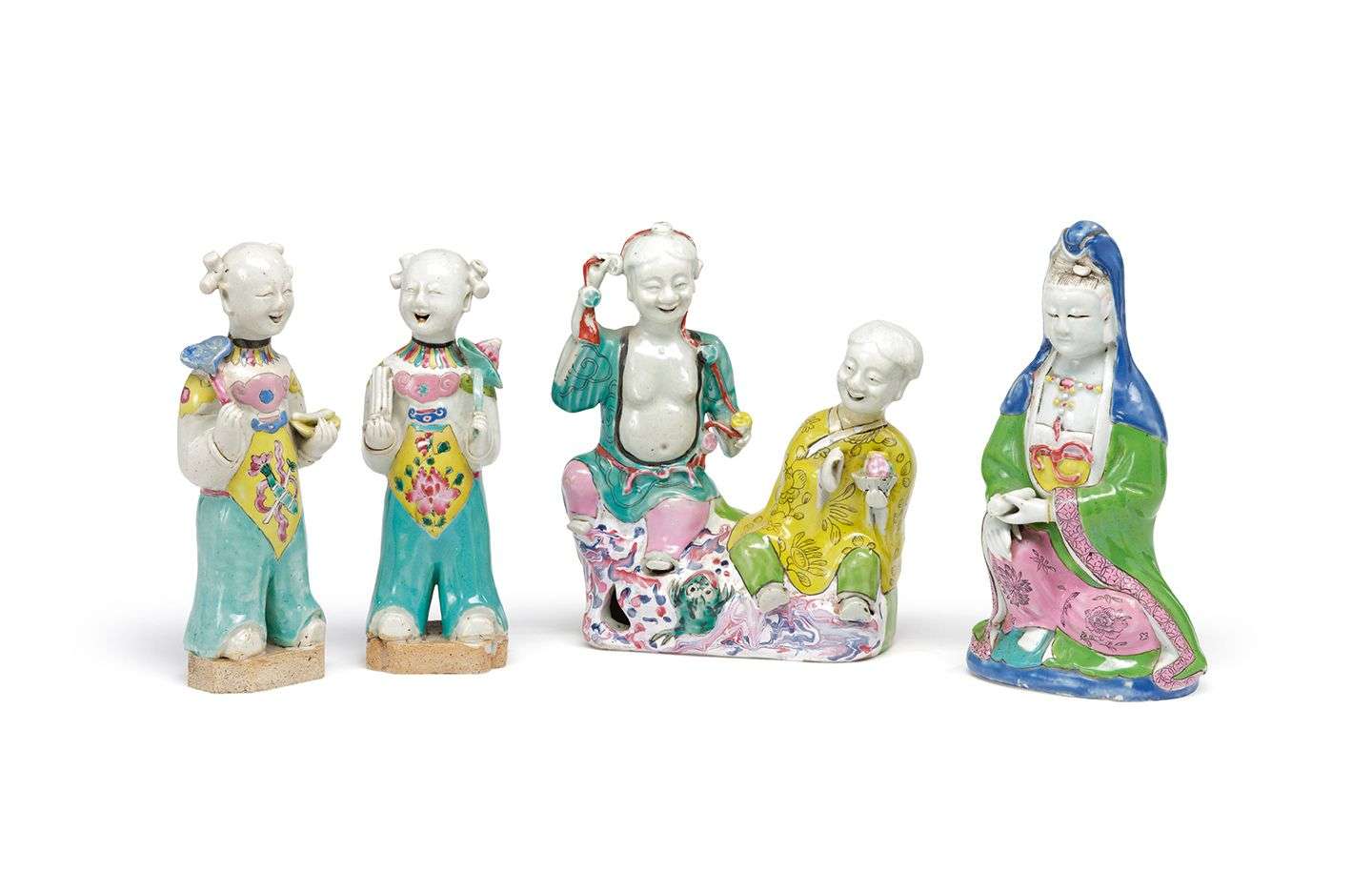 Ensemble de quatre statuettes en porcelaine de la famille rose figurant la bodhisattva