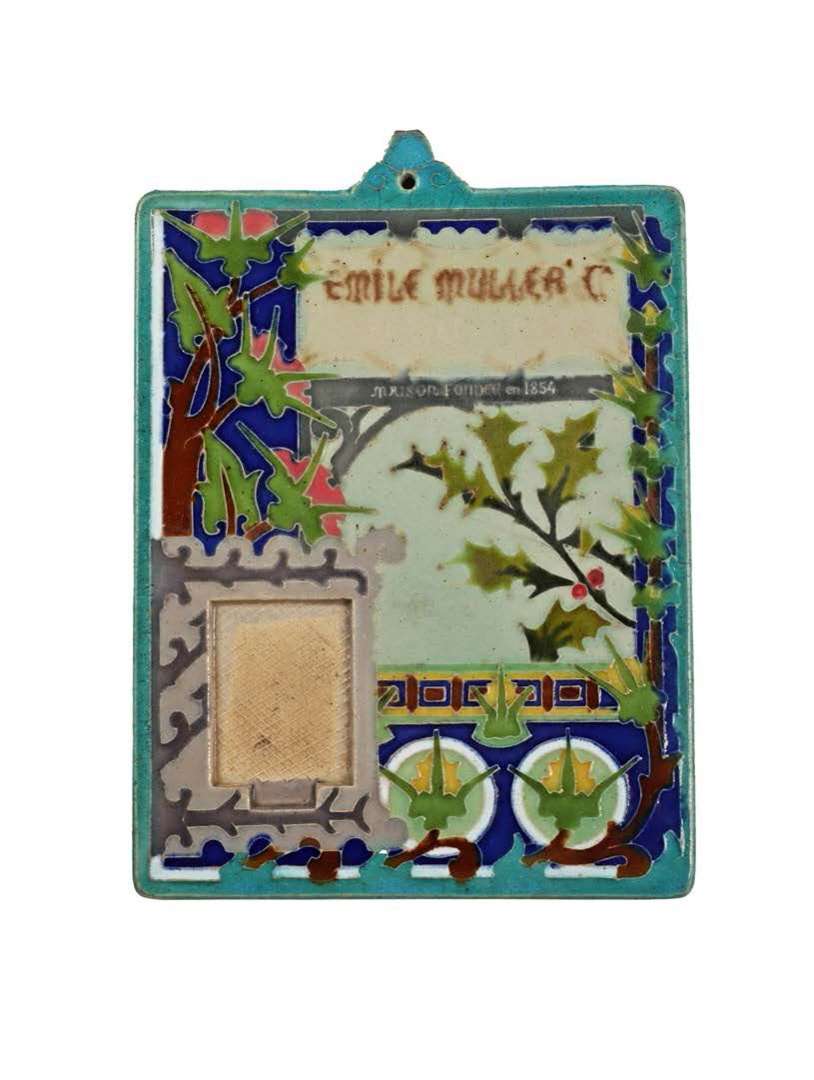 An ephemeris calendar stand, c. 1894-1895, in enamelled stoneware.