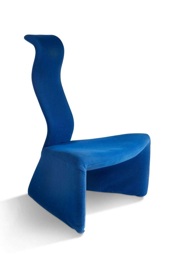A “Léda” chair, from a limited edition of 1 000, structure, covered with foam, original blue jersey upholstery. Stamped.