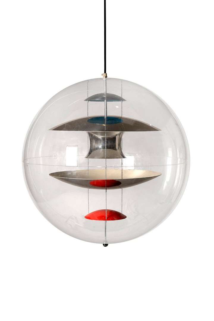 A “ VP Globe ” ceiling lamp, model designed c. 1969, spherical structure in translucent