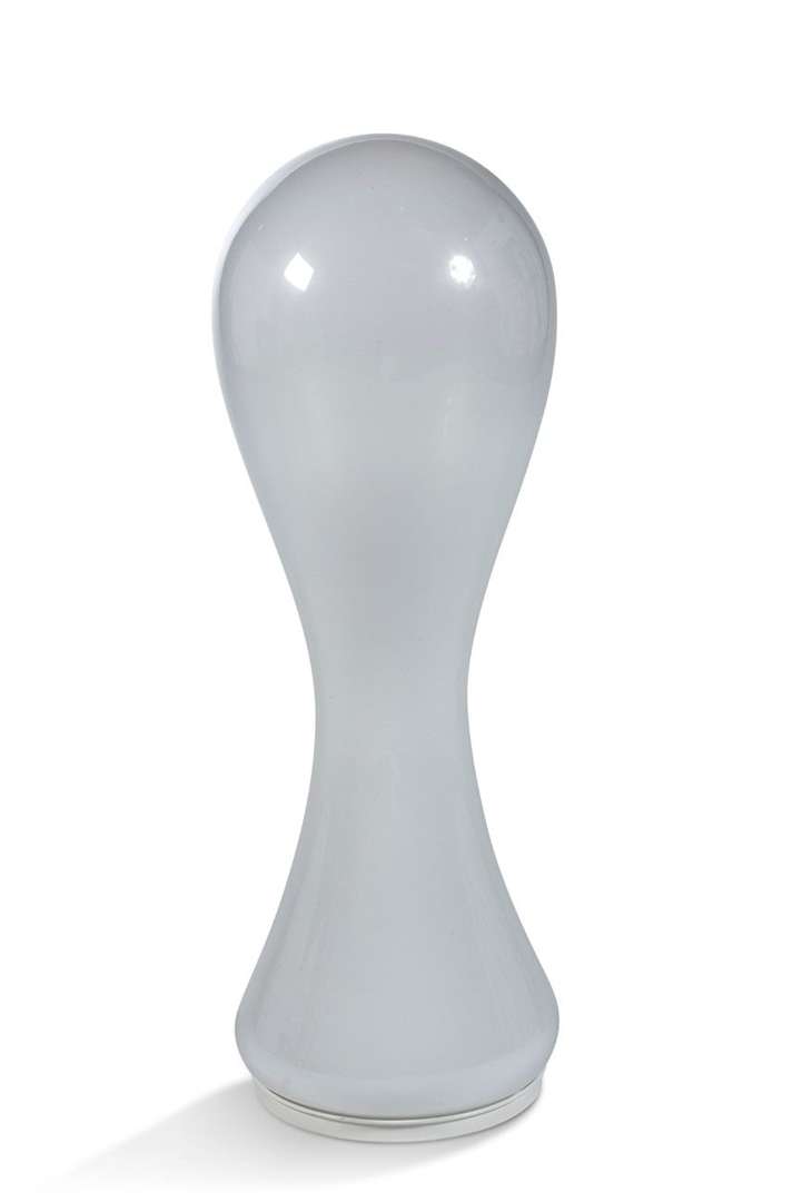 En verre de Murano blanc et semi translucide, base circulaire en métal laqué blanc.