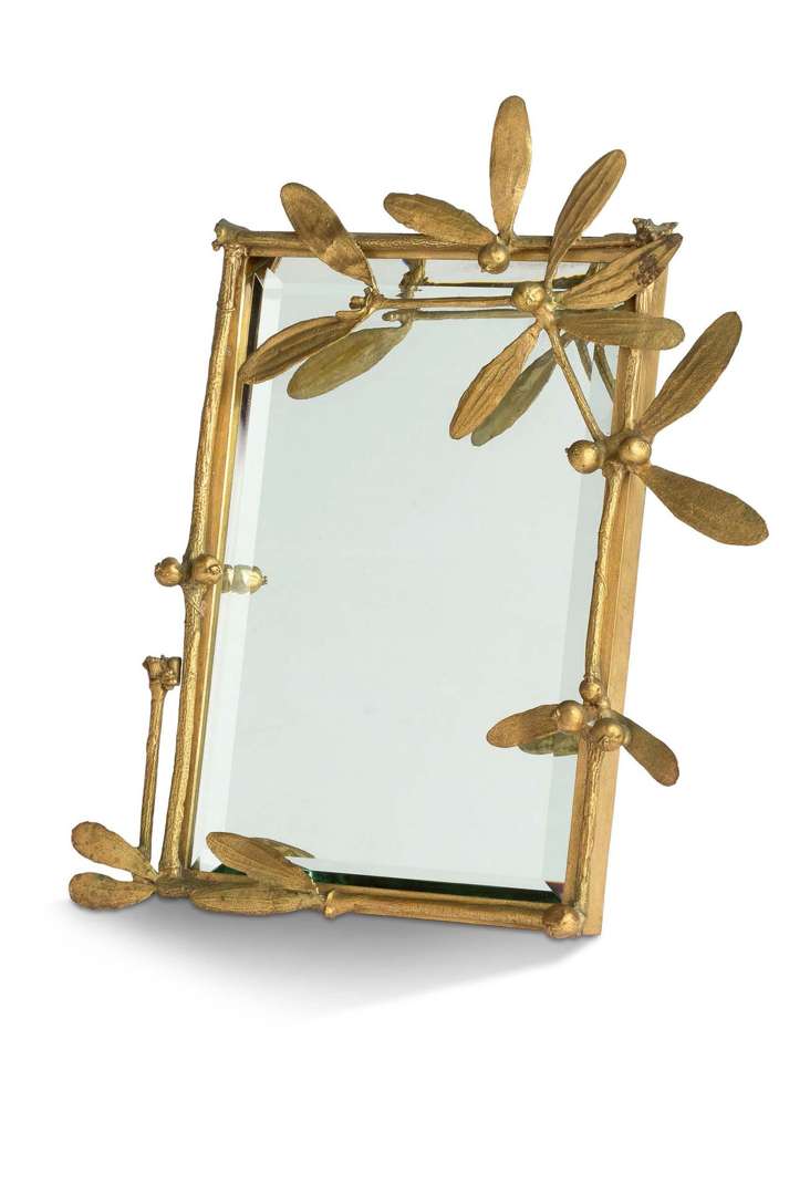 En bronze doré, à décor de branches de gui, le dos à chevalet, miroir biseauté d'origine.