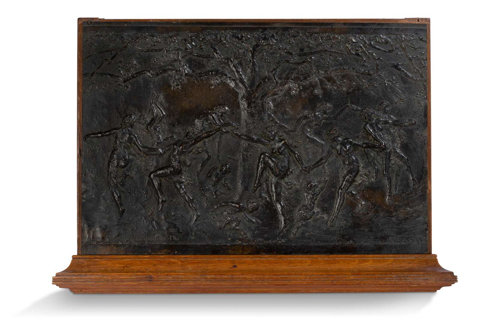 Bronze with brown patina plaque, signed and dated '11 nov. 1920' lower left, signed with the artist's monogram and inscribed 'E' lower right, oak frame and stand, anthumous cast probably made by Eugène Rudier
