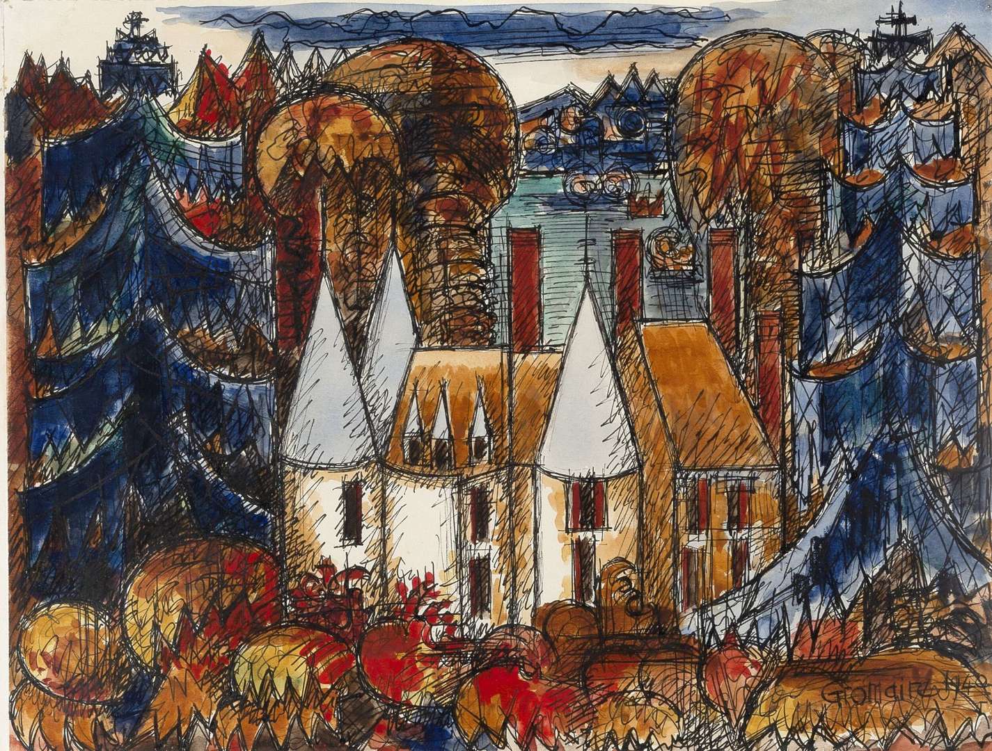 Watercolor and Indian ink on paper, signed and dated '1940' lower right