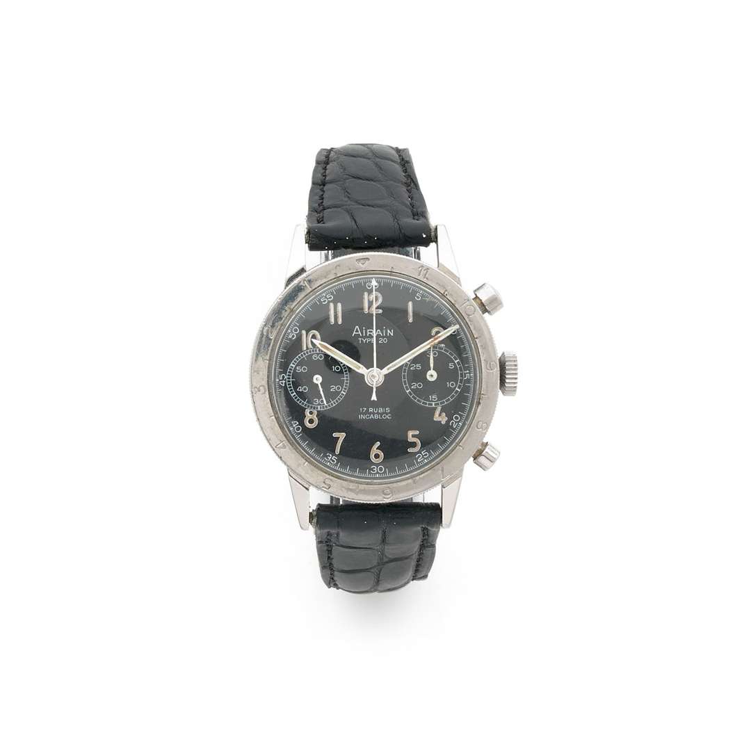 À l'origine manufacturé pour l'armée française dans les années 1950, ce chronographe à roue à colonnes est une montre militaire mythique que les connaisseurs sauront apprécier. Comptant parmi les 7 fournisseurs de l'Armée Française, avec Breguet et Dodane, Airain a produit des Type 20 durant les années 1950 et 1960. À l'origine, la marque fut fondée en 1934 par la famille Dodane (qui produisait également des Type 20 sous la signature Chronofixe). Fraîchement relancé après plusieurs années en sommeil, Airain commercialise à nouveau ce chronographe légendaire dans une version contemporaine.