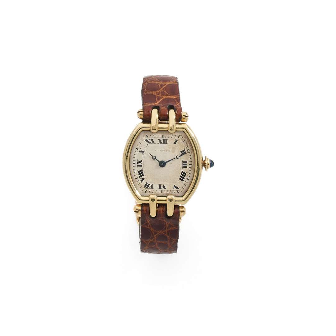 A 18k yellow gold manual winding wristwatch, case back engraved "May they flow gently during our separation » in French, gold deployant clasp numbered