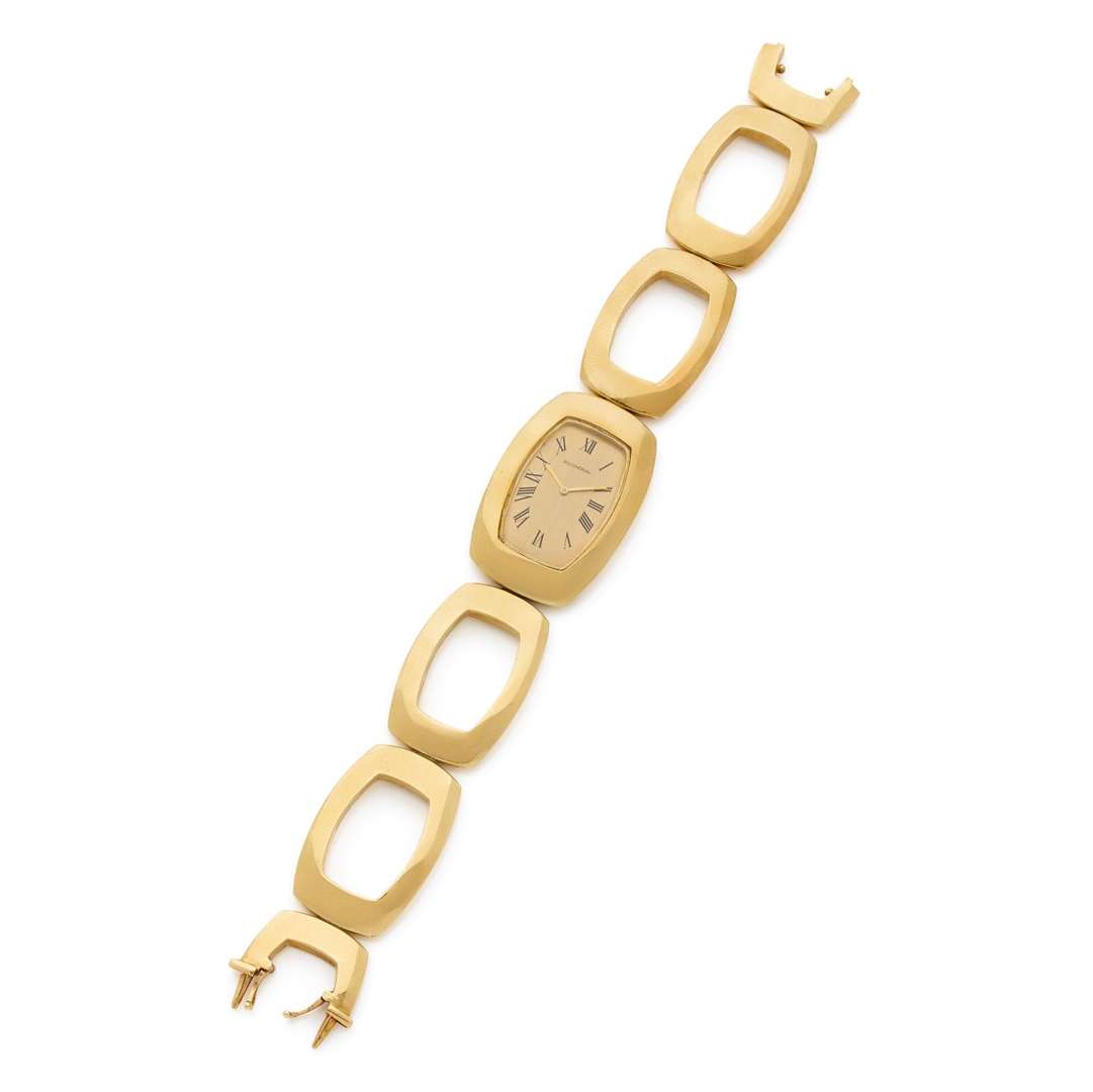 A 18k yellow gold manual winding lady's wristwatch, gold bracelet