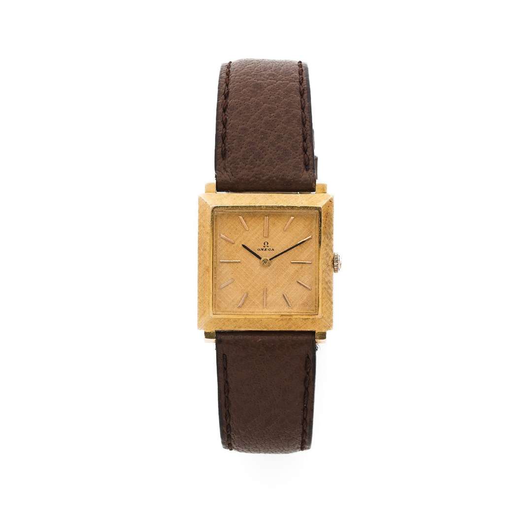 Boîtier : carré, lunette en or texturé, fond clippé, signé et poinçon tête d'aigle