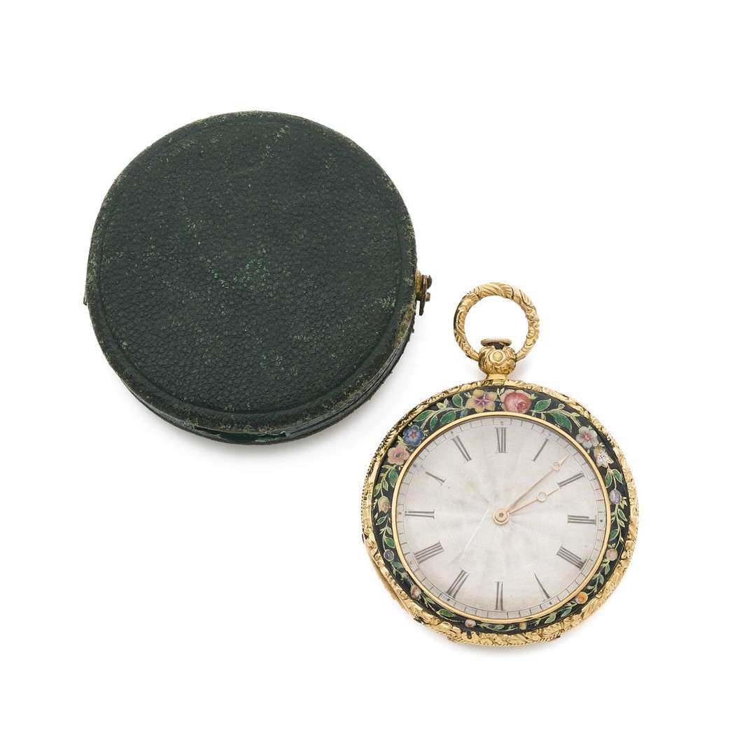 Montre de gousset en or jaune 18k (750) avec émail cloisonné