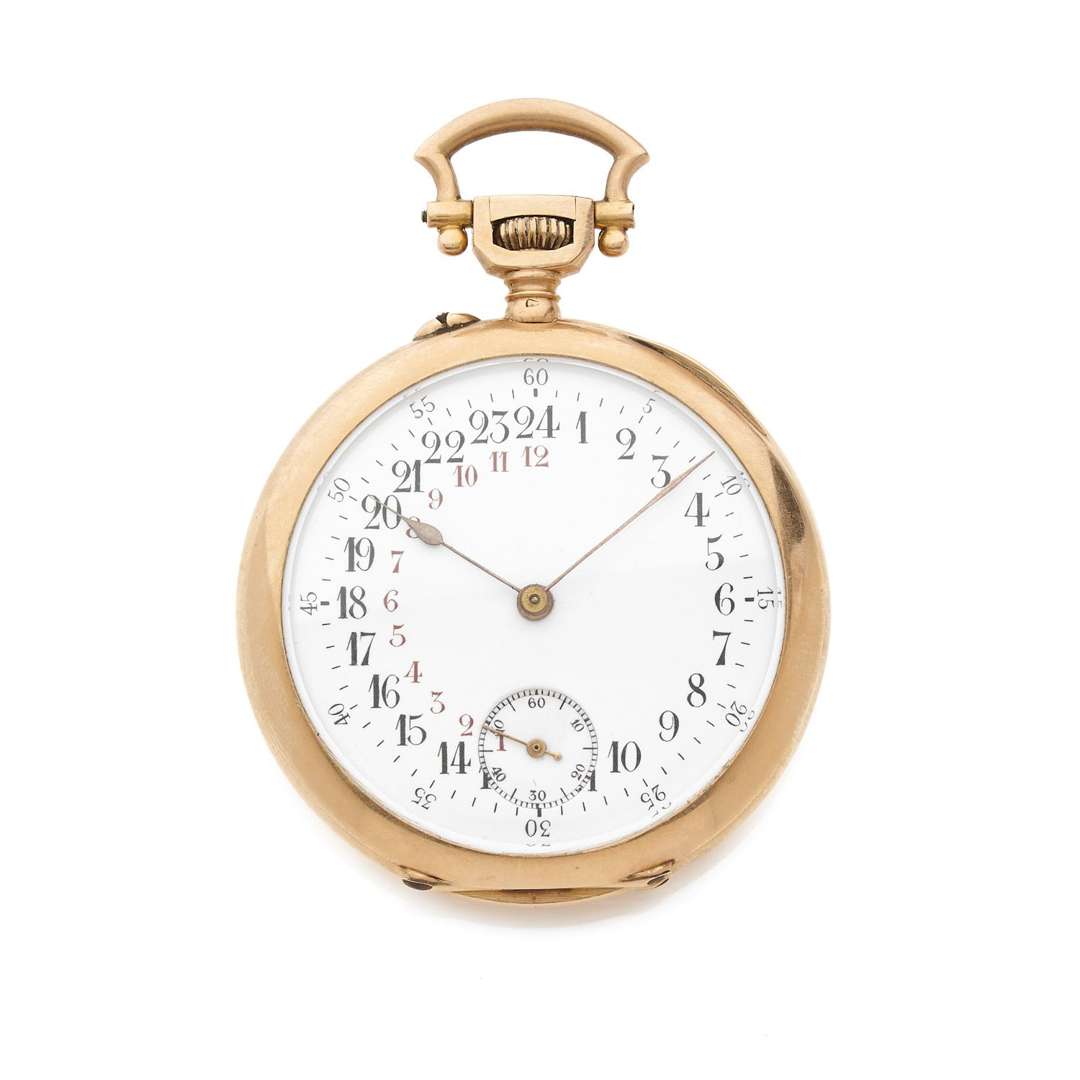 Montre de poche découverte en or jaune 18k (750) avec indication 24h